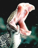 Its jaws spread as it swallows the mouse.
