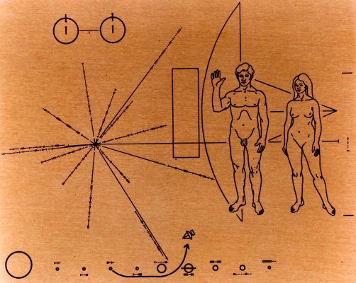 A contemporary of Sagan's, author Isaac Asimov, had similar thoughts: "Anti-intellectualism has been a constant thread winding its way through our political and cultural life, nurtured by the false notion that democracy means that 'my ignorance is just as good as your knowledge'. ![]() Sagan is most well known for assembling the first physical message that was sent into space: a gold-plated plaque, attached to the space probe Pioneer 10, launched in 1972. Pioneer 11, also carrying another copy of the plaque, was launched the following year. He continued to refine his designs; the most elaborate message he helped to develop and assemble was the Voyager Golden Record, which was sent out with the Voyager space probes in 1977. As a visiting scientist to NASA's Jet Propulsion Laboratory, he contributed to the first Mariner missions to Venus, working on the design and management of the project. Mariner 2 confirmed his conclusions on the surface conditions of Venus in 1962. Sagan was among the first to hypothesize that Saturn's moon Titan might possess oceans of liquid compounds on its surface, and that Jupiter's moon Europa might possess subsurface oceans of water, making Europa potentially habitable. Europa's subsurface ocean of water was later indirectly confirmed by the spacecraft Galileo. The mystery of Titan's reddish haze was also solved with Sagan's help. The reddish haze was revealed to be due to complex organic molecules constantly raining down onto Titan's surface. Sagan often challenged the decisions to fund the Space Shuttle and the International Space Station at the expense of further robotic missions Sagan also perceived very early that global warming was a growing, man-made danger, and compared it to Venus' hot, life-hostile planet due to a runaway greenhouse effect. He testified to the US Congress in 1985 that the greenhouse effect would change the earth's climate system. Sagan was also well known for his research on the possibilities of extraterrestrial life, including an experimental demonstration of the production of amino acids from basic chemicals by radiation with physical chemist Harold Urey. He is also the 1994 recipient of the NASA Public Welfare Medal, the highest award of the National Academy of Sciences for "distinguished contributions in the application of science to the public welfare". (He was denied membership in the academy, reportedly because his media activities made him unpopular with many other scientists). ![]() Sagan also wrote the introduction for Stephen Hawking's bestseller A Brief History of Time. Sagan was also known for his popularization of science, his efforts to increase scientific understanding among the general public, and his positions against pseudoscience, such as his debunking of the Betty and Barney Hill abduction story. You can find a list of all of Carl Sagan's books here. As mentioned above, Pioneers 10 and 11 both carried small metal plaques identifying their time and place of origin, for the benefit of any other spacefarers that might find them in the distant future. The golden plaque was devised by Carl Sagan who wanted any alien civilization who might encounter the craft to know who made it and how to contact them. It gives our location in the Galaxy and depicts a naked man and woman drawn in relation to the spacecraft. Pioneer 10 is heading towards the star Aldebaran in the Taurus constellation, and will take more than two million years to reach it. Pioneer 11 is headed toward the constellation of Aquila (The Eagle). Pioneer 11 will pass near one of the stars in that constellation in about 4 million years. The Pioneer Plaque decription: The plaque is a physical, symbolic message affixed to the exterior of the Pioneer 10 spacecraft. At the core of this message is a fundamental concept that establishes a standard of distance and time, which, thereafter, is employed by the other components of the plaque. The design team postulated that hydrogen, being the most abundant element in the cosmos, would be one of the first elements to be studied by a civilization. With this in mind, they inscribed two hydrogen atoms at the top left of the plaque, each in a different energy state. When atoms of hydrogen change from one energy state to another - a process called the hyperfine transition - electromagnetic radiation is released. It is this wave that harbors the standard of measure used throughout the illustrations on the plaque. The wavelength (approximately 21 centimeters) serves as a spatial measurement, and the period (approximately .7 nanoseconds) serves as a measurement of time. The final detail of this schematic is a small tick between the atoms of hydrogen, assigning these values of distance and time to the binary number 1. Since Pioneer 10 was directed neither to an exoplanet nor a star, contact is extremely unlikely. However, if the spacecraft is intercepted by an alien species, there is at least a chance that the species can interpret the message. NASA placed a more ambitious message aboard Voyager 1 and 2, a kind of time capsule, intended to communicate a story of our world to extraterrestrials. The Voyager message is carried by a phonograph record, a 12-inch gold-plated copper disk containing sounds and images selected to portray the diversity of life and culture on Earth. The contents of the record were selected for NASA by a committee chaired by Sagan. Dr. Sagan and his associates assembled 115 images and a variety of natural sounds, such as those made by surf, wind and thunder, birds, whales, and other animals. To this they added musical selections from different cultures and eras, spoken greetings from Earth-people in fifty-five languages, and printed messages from President Carter and U.N. Secretary-General Waldheim. Each record is encased in a protective aluminum jacket, together with a cartridge and a needle. Instructions, in symbolic language, explain the origin of the spacecraft and indicate how the record is to be played. 