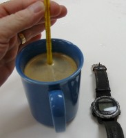 ![]() I conducted an actual experiment so that you could see what one looks like. Experiments are usually the result of curiosity and questions about something. Here's my question: "If you want to drink coffee at the warmest possible temperature, but aren't able to drink it for a period of time, should you wait to add the creamer, or add it immediately? In 15 minutes, which would give you the warmest coffee?" Purpose: To determine the effect on the cooling rate of coffee when creamer is added. Hypothesis: I believe that coffee will cool more slowly once the creamer has been added. In other words, after a period of time, the coffee with creamer will be warmer than black coffee would have been ... so it wouldn't make sense to add the creamer later and make it even cooler. Method: I will heat water and make instant coffee, and then measure its temperature every minute for a period of 20 minutes. I will then do the same for coffee with 10 ml of creamer added, and once again for coffee with 20 ml of creamer added. I measured all amounts using equipment from our school lab, but could just as easily have used kitchen measuring implements. Similarly I used a lab thermometer to record the temperatures, but a candy thermometer would have worked just as well. A watch was used to measure times, and all information was recorded on paper. In conducting an actual experiment, you should use a notebook and keep all your records, even if you mess up and have to redo something. Variables: