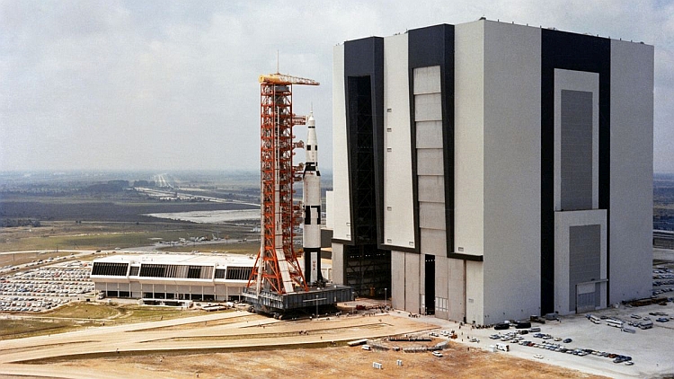 The Vehicle Assembly Building was built especially to allow the various stages of the rocket to be assembled vertically. It was also used to assemble the Space Shuttle, and remains for use with future launch systems.