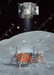 The Apollo mission consisted of a Command/Service Module and a two-part Lunar Module. The Command/Service Module and Lunar Module would separate after achieving lunar orbit insertion, with two of the astronauts in the Lunar Module. They would descend to the lunar surface using the engine in the lower descent stage of the Lunar Module. After exploring the surface, the astronauts would fire the ascent engine in the top half of the Lunar Module, which would separate, leaving the lower half on the surface while the top half ascended to orbit to rendezvous with the Command/Service Module for the journey back to Earth.