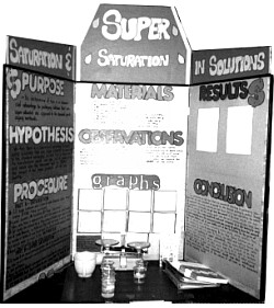![]() Your science fair display represents all the work that you have done. It should consist of a backboard, the project report, and anything that represents your project, such as models made, items studied, photographs, surveys, and the like. It must tell the story of the project in such a way that it attracts and holds the interest of the viewer. It has to be thorough, but not too crowded, so keep it simple. A three-sided backboard is usually the best way to display your work. Sturdy cardboard or other heavy material is easier to work with and is less likely to be damaged. Wooden panels can be cut and hinged together. Some office supply stores sell inexpensive premade backboards. You can use a different color by covering the backboard with self-stick, colored shelving paper, or cloth. For items placed on the backboard, select colors that stand out but don't distract the viewer from the material being presented. For example, if everything is in fluorescent colors, the bright colors, instead of your work, will be what catches the eye. ![]() The project title should go at the top of the center panel, and the remaining material needs to be placed neatly in some order. The picture above shows how to place the material if your project was an experiment. The heading "Next Time," or "Further Research", should be included. (It would follow the conclusion, and contain a brief description of plans for future development of the project.) You want a display that the judges will remember positively. Before you glue everything down, lay the board on a flat surface and arrange the materials a few different ways. This will help you decide on the most suitable and attractive presentation. |