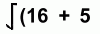 ![]() Since that's all there is, close the brackets before pressing 'Enter': ![]() Obviously the answer is 4. Even if you forget to close the bracket, the calculator will still give you 4. However, you should get into the habit of always closing the bracket, or you will forget to do it when it's really necessary and will get the answer wrong! Here's what we mean. If you had to do this question: ![]() ... you would want the answer to be 4 + 5 = 9 However, if you enter it on the calculator without closing the bracket: ![]() ... the calculator will do the square root of 21 and get 4.582575695 This is what you want the calculator to do: ![]() When you use a key that inserts a bracket, you must close the bracket before entering any more numbers. Other functions besides the square root provide brackets like these; whenever they're inserted, be sure to close them, even if you think you don't need to. |