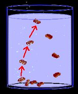 You'll need a jar, some clear carbonated pop (ginger ale will do), and some raisins. Fill the jar with the pop and throw in some raisins. They will sink to the bottom, because they are denser than the liquid they're in.