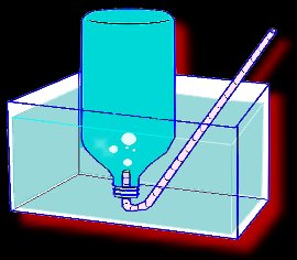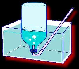 Now attach several straws together with tape. The kind with one end that bends is best, since now you have to insert one end of this long straw under the water and into the neck of the bottle, ... as shown above.