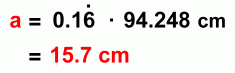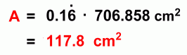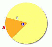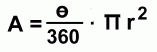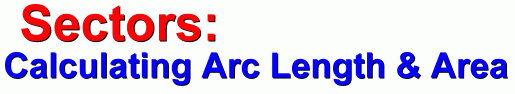 ![]() On this page we'll show you how to find the arc length a and the area A of the sector. ![]() ![]() Finding Arc Length ![]() We'll use a circle with radius 15 cm and central angle 60°. The first step is to find out what fraction of the circle is represented by the central angle 60°: ![]() The sector represents 1/6 of the circle, or 0.1666... of the circle. To find the arc length a, we now need to find the circumference (the distance around the full circle), and then find 1/6 of it (multiply it by 0.1666...) ![]() ![]() This is the length of the arc a. This method will work for any sector in any circle. You just need to find the fraction of the circle that the sector angle represents, and then find that fraction of the circumference. ![]() Here's a quicker formula to use, summarizing this in one calculation. Math 30 students will learn a new formula for finding arc length: a = r Θ, where Θ is measured in radians. Finding the Sector Area ![]() Again we'll use a circle with radius 15 cm and central angle 60°. The first step once again is to find out what fraction of the circle is represented by the central angle 60°: ![]() The sector represents 1/6 of the circle, or 0.1666... of the circle. To find the sector area A, we now need to find the area of the full circle, and then find 1/6 of it (multiply it by 0.1666...) ![]() ![]() This is the area of the sector, A. This method will work for any sector in any circle. You just need to find the fraction of the circle that the sector angle represents, and then find that fraction of the area. ![]() Here's a quicker formula to use, summarizing this in one calculation. |