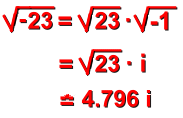 If you can imagine them, they exist. What kind of number can we imagine that is not a Real number?!? Any number which cannot possible exist could be called 'imaginary'. Imaginary numbers are actually ones like this ... ![]() Think about this number. It is certainly a number ... we just wrote it. But what kind of number could it be? What is the square root of negative twenty five? A square root is a value that will multiply by itself to give the original number. For instance: ![]() ![]() If this number exists, then its value must multiply by itself to give -25. Can - 5 be the answer? No. -5 x -5 = +25 Can +5 be the answer? No. +5 x +5 = +25 You can write the square root of a negative number, but you can't work it out. It has no value. Numbers like this are called imaginary numbers, and they always involve the square root of a negative number. It's a little like unicorns. They don't exist. But we can read stories about them, draw them, talk about them, and use them to teach little kids about how to behave. Similarly, we can write imaginary numbers, examine their properties, and use them in problems. The problem with imaginary numbers really just arises from the negative under the root sign. In fact, since every negative number can be thought of as a positive number multiplied by -1 (ie: -74 = 74 x -1), every imaginary number can be simplified like this: ![]() where i is the label given to the troublesome 'square root of -1'. Every imaginary number, then, is just some multiple of i. Here's another example: ![]() Complex numbers are ones which have a Real and an Imaginary part. A typical complex numer might be: ![]() Since it has an imaginary part, a complex number has no value either. |