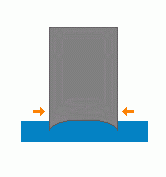 ![]() ![]() The blade on a hockey player's skate is not flat, even after it has been sharpened. If it were flat, as shown in the diagram at the right, the skate would be able to slide sideways just as easily as it slides forwards. Players would have difficulty maintaining their balance, and would find it very difficult to push themselves forward, or turn. ![]() ![]() This prevents the skate from sliding sideways easily, giving the player more stability. It also allows the player to apply a force to the ice sideways, allowing him to turn his skate and push ... to move forward or to stop. ![]() Hockey goalies, however, need to be able to slide more freely from side to side; as a result, the groove in their skate blades is much shallower, resulting in lesser lateral friction. |