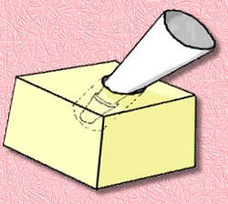 Your solar oven is almost ready to use! All you need to do now is find something to put it in that will help keep the heat in, and keep it pointed at the sun. We used an old chunk of styrofoam; we cut a cup-sized hole in it at an angle, and wedged our oven into the hole. But you can find other ways to accomplish the same thing. A small cardboard box filled with dirt, which is a good insulator, will also keep your collector pointed at the sun if you bury it at an angle. Or if it isn't winter, you can just bury the collector in the ground. Just be sure to keep the foil collector unwrinkled, and pointing at the sun.