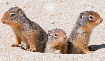 ![]() Columbian ground squirrels are diurnal; they're active during the day, and sleep in their burrows at night. They are in torpor, a type of hibernation, for around 250 days a year. ![]() These squirrels are very social; they greet each other by touching their mouths and noses together. The most common activities for Columbian ground squirrels, while above ground, include standing at attention, feeding, and grooming, as well as eating. They emerge from dens about an hour before sunrise and return near sunset. They are active during the hottest parts of the day, but more likely to be found out around mid-morning. They are primarily herbivorous, eating grasses, leaves, bulbs, fruits, and seeds, but they will occasionally eat birds, insects, and other small animals. Like most small mammals in Alberta, their predators include grizzly bears, coyotes, wolves, and golden eagles. Despite their cute appearance, these animals can be dangerous. They will bite, and they can carry fleas and wood ticks that cause Rocky Mountain spotted fever. |