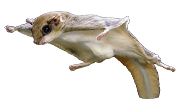 Flying squirrels don't actually fly, rather they glide using a membrane created by a fold of skin. Flying squirrels can glide from a running start along a high tree branch, or from a stationary position by bringing their limbs under their body, retracting their heads, and then propelling themselves off the tree. They can reach distances of up to 45 metres or more.