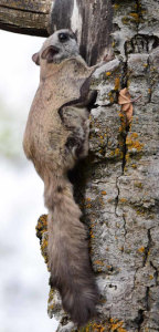 These flying squirrels are small tree squirrels; they're light brown with pale underparts. They are