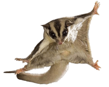 ![]() Sugar gliders are squirrel-sized marsupials that live in the forests of Australia and New Guinea. They are highly social, living in small colonies or family groups numbering up to seven adults and their offspring. Sugar gliders are largely nocturnal, and rarely come to the ground, finding both shelter and food in the trees. As a marsupial mammal, it raises its newborn offspring inside an external pouch at the front of its body. ![]() They got their name because they like to eat forest sweets like acacia gum, eucalyptus sap, and flower nectar, but sugar gliders are actually omnivores, consuming both plant and animal matter including lizards and small birds. A sugar glider weighs 85 to 141 grams, about as much as a baseball, and has short, gray fur with a white belly. It has dark rings around its big, black eyes, and a black stripe running down the center of its face. Its tail is longer than its 15 cm body, and is somewhat prehensile; it is used to carry leaves to its nest. During periods of cold or unavailable food, sugar gliders may lapse into torpor for up to 16 hours per day to conserve energy. ![]() Sugar gliders communicate using scents, and a wide variety of yapping, buzzing, droning, hissing, and screaming sounds. They make a barking noise when communicating with other gliders. When contented, the glider may make a purring sound, which is softer than a cat’s purr. Sugar gliders nest in groups of up to seven adult males and females and their young, probably all related and descended from an original colonizing pair. Female sugar gliders have a pouch containing four teats, which a mother uses to raise one or sometimes two joeys. These highly social creatures live in trees, rarely touching the ground, and they groom each other, which not only keeps their fur clean, but also helps solidify relationships. ![]() ![]() |