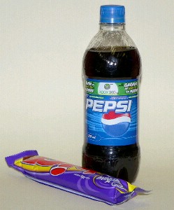 ![]() How much sugar do you consume every day? The answer might be ... a lot! This page will show you just how much sugar is actually in a typical snack. The snack we're going to look at is a common one we've all enjoyed, a pop and a chocolate bar. We didn't make any special effort to choose brands; we just picked one of each from the front of the shelves. Here's what we chose: ![]() The chocolate bar is a 'Mr. Big', also very popular. It's the normal size, weighing 60 grams. Here's the question: How much sugar is in this two-item snack? You probably don't have any idea ... we didn't either. But if you look at the labels, you can find out everything you need to know. |