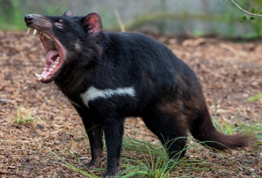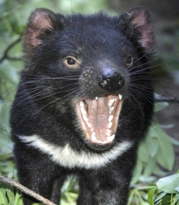 ![]() ![]() The size of a small dog, it's characterized by its stocky muscular build, black fur, pungent odour, extremely loud screech, keen sense of smell, and ferocity when feeding. The Tasmanian Devil's large head and neck allow it to generate among the strongest bites per unit body mass of any predatory land mammal. It both hunts its prey and scavenges on carrion. Although devils are usually solitary, they sometimes eat together. Tasmanian Devils can prey on animals up to the size of a small kangaroo, including wombats and wallabies, but they usually are opportunistic, eating carrion more often than they hunt live prey. Their diet is varied, also including rabbits, birds, fish, fruit, insects, tadpoles, frogs, reptiles, and people's leather shoes! On average, devils eat about 15% of their body weight each day. Tasmanian Devils can eliminate all traces of a carcass of a smaller animal, devouring the bones and fur. Tasmanian Devils can climb trees and swim across rivers, and can run up to 13 km/h or more for short distances. In areas near human habitation, they are known to steal clothes, blankets and pillows for use in their dens. Devils can bite through metal traps, and use their strong jaws for escaping captivity. Dense vegetation near creeks, thick grass, and caves are often used as dens; adult devils use the same dens for life. ![]() As there are only four nipples in the mother's pouch, competition is fierce, and few newborns survive. The young grow quickly, and are ejected from the pouch after around 100 days, weighing roughly 200 grams. Devils are fully grown at two years of age, and few live longer than five years in the wild. The devil stores body fat in its tail, and healthy devils have fat tails. It has long claws that allow it to dig burrows and seek subterranean food, and grip prey forcefully. Adult devils may eat young devils if they are very hungry. Since the late 1990s, devil facial tumour disease has drastically reduced the population and now threatens the survival of the species, which in 2008 was declared to be endangered. Devil facial tumour disease causes tumours to form in and around the mouth, interfering with feeding and eventually leading to death by starvation. Tasmanian Devils are being sent to zoos around the world as part of the Australian government's 'Save the Tasmanian Devil Program'. Visit the Australian Reptile Park and search for their videos about Tasmanian Devils, and particularly their successful breeding program. |