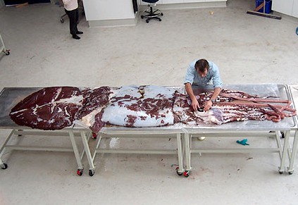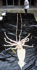 ![]() Squid are molluscs, in the same family as slugs, snails and shellfish. Giant squid are the largest of all molluscs (and the largest invertebrates on Earth); they are thought to grow up to 18 metres in length, and can weigh up to a tonne. ![]() Sperm whales have been found with massive tentacle scars on their skin, more evidence that the giant squid exist in the depths of the ocean. Scientists believe that the giant squid is the only animal capable of defending itself from the attack of a sperm whale, the world's largest carnivore. Giant squids are thought to live in the deepest, coldest parts of the sea. Occasionally, warm water causes a giant squid to rise to the surface, where it is unable to return to the deeps. A giant squid's blood cannot carry oxygen well in warm water, so if it is forced to the surface, it will suffocate. Surprisingly, there is an even larger squid out there in the deep ocean! Recently, a colossal squid has been caught in the waters off the Antarctic continent. It's being called the 'colossal squid'. ![]() The existence of the 'colossal squid' has been suspected for many decades, since arms from the creature have occasionally been recovered from the stomachs of sperm whales. But it wasn't until an actual specimen was caught near Antarctica (pictured above) that the reality of this new type of squid was brought home to scientists. The specimen is larger than any previously seen giant squid, and it is only a young one, just two-thirds grown. This squid has one of the largest beaks of any squid, and seems to have more muscles attached to its tentacles. It also has unique swivelling hooks on the clubs at the ends of its tentacles. All of these things make it a very deadly predator. It seems there are sea monsters after all! ![]() ![]() ![]() ![]() ![]() ![]() ![]() |