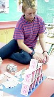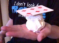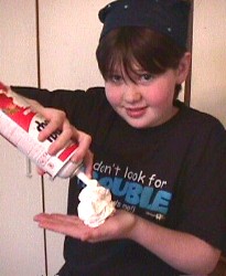 ![]() Some materials are called colloid suspensions. They are composed of a framework of one kind of particle, which supports other particles within the substance. Lets look at some materials like this, especially ones which behave like a 'house of cards'. But a colloid can have particles suspended in it that are too small to see. For example, whipped cream is composed of air bubbles, that help support little bits of butter fat. You can't see the bubbles or the fat ... the substance appears to be a smooth 'solid'. The air bubbles link to each other and form a structure that supports not only the weight of the bubbles themselves, but the butter fat within, and even things you can pile on top. If this 'foam' could be hardened, it would make a light, strong structure. When done with plastics or metals, you get materials like styrofoam or foamed aluminum. The problem, of course, is that colloidal suspensions are not stable. Whipped cream, Jello (another example of a suspension), and other colloids will break down when they are warmed. Eventually they lose all their structure, becoming liquids. ![]() When a sideways force is applied to a house of cards, the house falls apart. In some substances that are colloidal suspensions, when a sideways force is applied, the solid form of the substance becomes more like a liquid, as the particles lose their grip on one another. Substances which are thick like a solid, but which flow like a liquid when a sideways force is applied, are called thixotropic. Can you think of any thixotropic substances? The dictionary definition of thixotropy: "a property of certain gels which liquefy when subjected to vibratory forces like simple shaking, and then solidify again when left standing." Toothpaste is also thixotropic. It is much like a solid when left alone. But when you squeeze it, applying a sideways force through the tube, it flows much like a liquid. Mix a small amount in a bowl. For our example here, we also added food colouring, so that the mixture would show up more clearly. You'll immediately notice a problem when you start mixing water with the corn starch powder. The powder immediately turns to a thick, almost solid, paste. Keep adding water (or more powder) and stirring until you have a thick, smooth mixture. As you stir, it will clump like a solid. But when you leave it, it will look wet, and when you pour some out of the bowl, it will pour like very thick paint. Go ahead and pour out a little bit onto the table. The substance feels wet. Slowly push your finger into it, and pull it out. The substance definitely resembles thick paint. But wait ... pick up a piece of the material you poured onto the table. Yes, that's right ... it's a solid piece! Now go back to the bowl and push your finger onto the surface of the 'liquid' quickly, and with a lot of force. Hit it hard with your knuckles. The harder you hit it, the more solid it appears. You will be amazed to discover that the material is now acting just like solid rock. When you shake the bowl, however, you'll see that it's also behaving like a liquid! Corn starch and water make a dilantant suspension. The particles are held loosely. When a small sideways force is applied, by shaking the bowl, or pushing into it slowly with a finger, or allowing gravity to pull it sideways when you pour, the weak bonds between the particles break, and the substance flows just like a liquid. But if you hit the suspension hard with your finger, or with a hammer, it turns solid! Dilantant materials increase their viscosity as shear forces increase. Corn starch is, as its name suggests, a starch, which is a long molecule made from sugars. Starch from various sources has been used for centuries as a stiffener. You may have sprayed it on your clothes after ironing, or added it to a sauce. There are mixtures found in nature which are thixotropic. Some types of clay, for example, are quite solid. Clay contains solid particles and water molecules, held together in a fairly rigid structure. Often houses are built over this material, without problems. However, when an earthquake happens, the thixotropic clay gets shaken, and the structure of its particles breaks down, disappearing like a house of cards. The water molecules are free to move around, and they provide lubrication that turns the clay to a liquid ... and the houses fall down. Ordinary mud will sometimes act this way. If you are careful to bring your feet straight down on the 'hard' surface of the mud, you can walk across it. But it you twist your feet while walking, or press too hard, your boots will sink into the now 'liquefied' mud. |