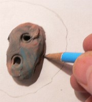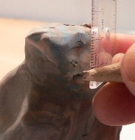 Our map will start with the top elevation. We're going to show elevation changes of 1 cm on the map, so measure 1 cm down from the top of the mountain and make a small mark.