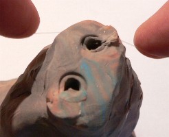 Using the fishing line, carefully cut off the top one centimetre of the mountain, at the mark you made. Be sure to make the cut as close to horizontal as you can.