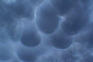 ·The diagram at the left shows a supercell thunderstorm that has generated a tornado. Note the classic thunderstorm shape, and especially the mammatus clouds (shown also in photo below) that are characteristic of tornado-producing storms. Witnesses often describe these clouds as being greenish-blue.