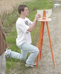 The next step is to measure the angle of inclination to the top of the wall. This can be done using a device called a clinometer. We used several different types. A blackboard protractor, thumbtack, string and weight can be used to make a simple one if you don't have a real clinometer. We did the angle measurement several times, and found an average value of 24 degrees.