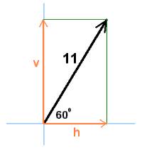 In the picture above, the vector of length 11 at 60 degrees can be replaced by the component vectors h and v.