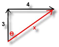 The angle of the vector sum can be found using the trigonometric ratio tan: