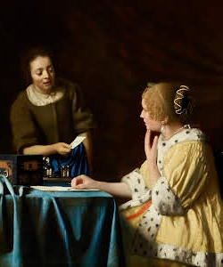 Johannes Vermeer was a Dutch artist who lived and painted in the mid 1600s, in the city of Delft, and who created paintings that are among the most well known and loved images in art. Only about 37 of his paintings survive. Most of his later paintings, the most famous ones, picture scenes of daily life, a world of domestic tranquillity, where women and children go about their lives in their homes.