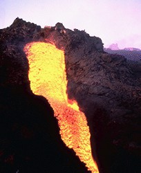 The crust of the Earth is constantly being destroyed (melted into the mantle below) as plates collide; at the same time, new crust is being formed in other trenches between plates where upwelling lava pushes the plates apart. ![]() If the level of magma in the magma chamber below the volcano drops, the top of the volcano's cone may collapse into it, forming a crater called a caldera. This too may collapse and cool, and fill with water, forming a crater lake at the top of the old volcano. Types of Volcanoes ![]() Shield volcanoes are the largest volcanoes on Earth in terms of land area covered; in northern California and Oregon, many shield volcanoes have diameters of 6 kilometres. They are built almost entirely of fluid lava flows that build up layer after layer. Shield volcanoes almost always emit very fluid or runny lava that spreads over a wide distance, so these volcanoes are not steep; from the side they take on the shape of a warrior's shield, hence their name. However, shield volcanoes produce lots of lava. Eruptions are only explosive if water somehow gets into the lava. Often they produce fountains of lava that form cinder cones. Shield volcanoes can be created over hotspots, but can also be found where subduction occurs. The Hawaiian Islands are the most famous examples of shield volcanoes. Mauna Loa (at the right) is also the world's largest active volcano. ![]() Composite volcanoes are the most common kind of volcano, and often rise to several kilometres above ground level. They produce very thick lava. Because the lava is thick, gases can build up in it; when the pressure gets high enough, they cause an explosion, ejecting lava and other material. Pyroclasts are pieces of solid lava blasted into the air by the eruption. Volcanic bombs are blobs of molten magma thrown out by the volcano that cool and harden in flight. Much of the material ejected by explosive volcanoes is ash and pyroclasts or bombs; the rest is lava, which either flows through breaks in the crater wall or from fissures on the sides of the cone. Strato volcanoes are usually found where a plate is subducting, and the magma produced by strato volcanoes is less than that of shield volcanoes. Examples of strato volcanoes include Mt. St. Helens in Washington, US, and Mt. Fuji in Japan. Strato volcanoes have caused more casualties than other types of volcanoes, probably because there are more of them, and also because they form steep piles of ash and lava, where landslides and mudslides can occur frequently. ![]() ![]() Mt. St. Helens' eruption put so much ash into the upper atmosphere that it darkened the skies in Alberta