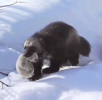 ![]() ![]() The wolverine is a muscular carnivore about the size of a medium dog, and a very solitary animal. The wolverine has a reputation for ferocity and strength out of proportion to its size, with the documented ability to kill prey many times larger than itself. The wolverine lives in remote areas of northern boreal forests, and the subarctic and alpine tundra of the northern hemisphere. Its greatest populations are in northern Canada, the state of Alaska, northern Europe, and throughout Siberia. However, its population has steadily declined since the 19th century owing to trapping and increasing human habitation. ![]() Wolverines have a special upper molar in the back of the mouth that is rotated 90 degrees, towards the inside of the mouth. This allows wolverines to tear off meat from prey or carrion that has been frozen solid. Wolverines are primarily scavengers; most of its sustenance is derived from carrion. Wolverines feed on it after the predator, often a pack of wolves, has finished, or simply take it from another predator. Wolverines are also known to follow wolf and lynx trails, in order to scavenge the remains of their kills. Whether eating live prey or carrion, the wolverine's feeding style appears voracious. ![]() Other prey include porcupines, squirrels, beavers, marmots, moles, gophers, rabbits, mice, rats, shrews, lemmings, caribou, deer, sheep, goats, cattle, bison, moose, and elk. Smaller predators are occasionally preyed on, including martens, mink, foxes, lynx, weasels, coyotes, and wolf pups. Wolverines often pursue live prey that are relatively easy to obtain, including animals caught in traps, newborn mammals, and deer, including adult moose and elk when they are weakened by winter or stuck in heavy snow. Their diets are sometimes supplemented by birds' eggs, birds (especially geese), roots, seeds, insect larvae, and berries. Wolves, black bears, brown bears, cougars, and golden eagles are capable of killing wolverines, particularly young and inexperienced ones. Grey wolves are the wolverine's most dangerous predator; when wolves move in to a wolverine's territory the wolverine will abandon it. In North America, another predator is the cougar. Wolverines try to avoid encounters with grizzly bears. ![]() Female wolverines burrow into snow in February to create a den, which is used until the kits are weaned in May. This fact has led to concern that global warming will further shrink the ranges of wolverine populations. Their need for large territories brings wolverines into conflict with human development, and hunting and trapping further reduce their numbers, causing them to disappear from large parts of their former ranges. |